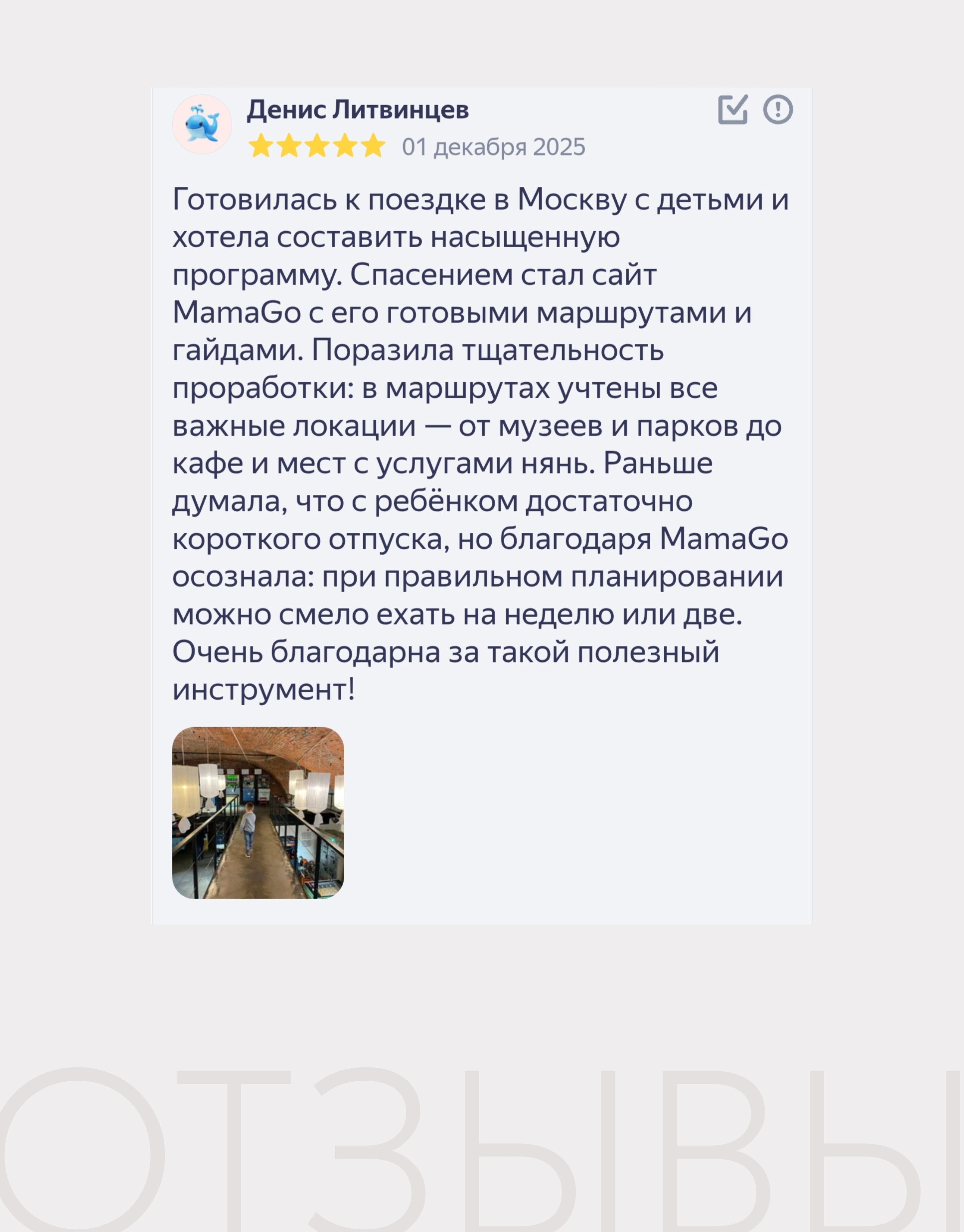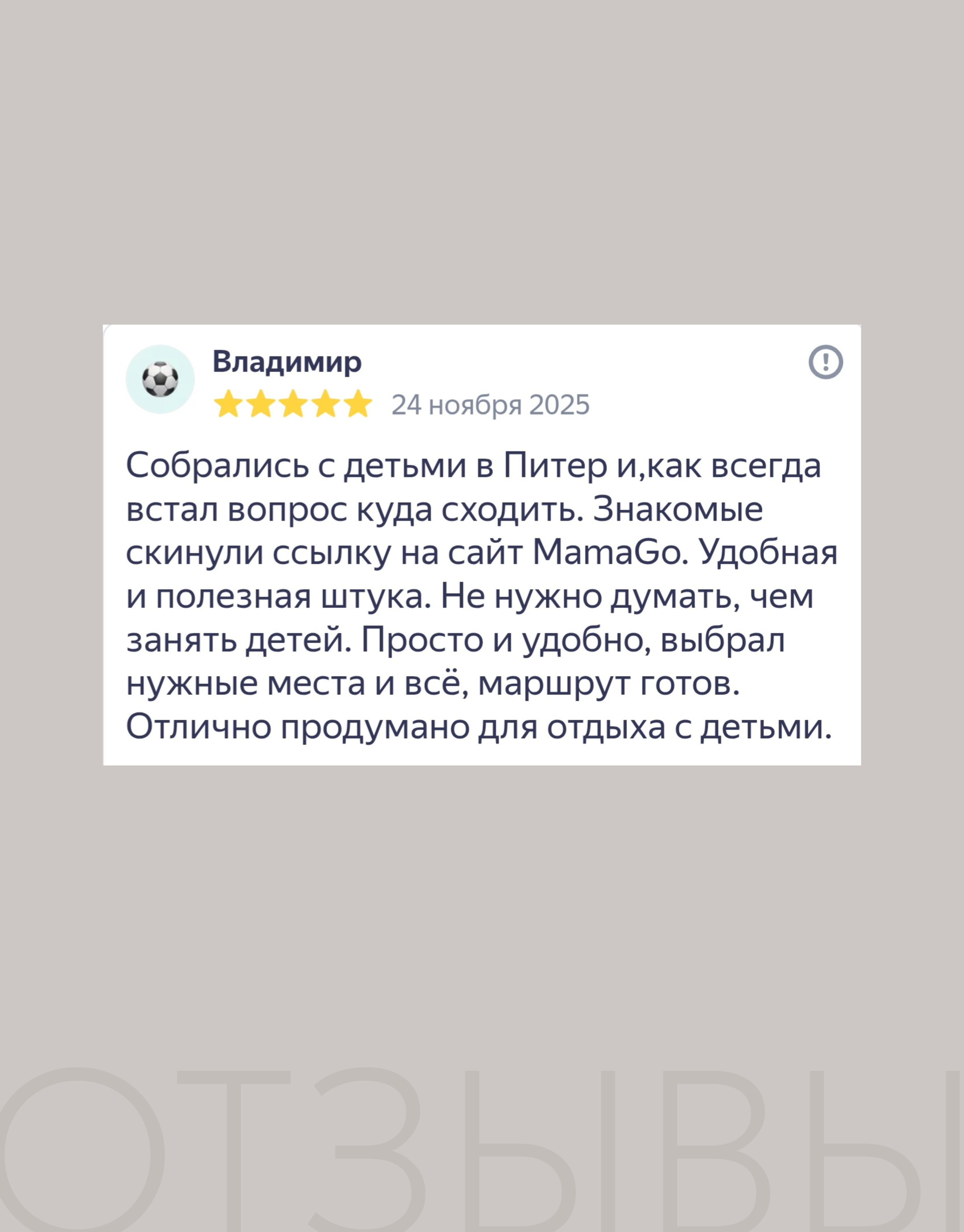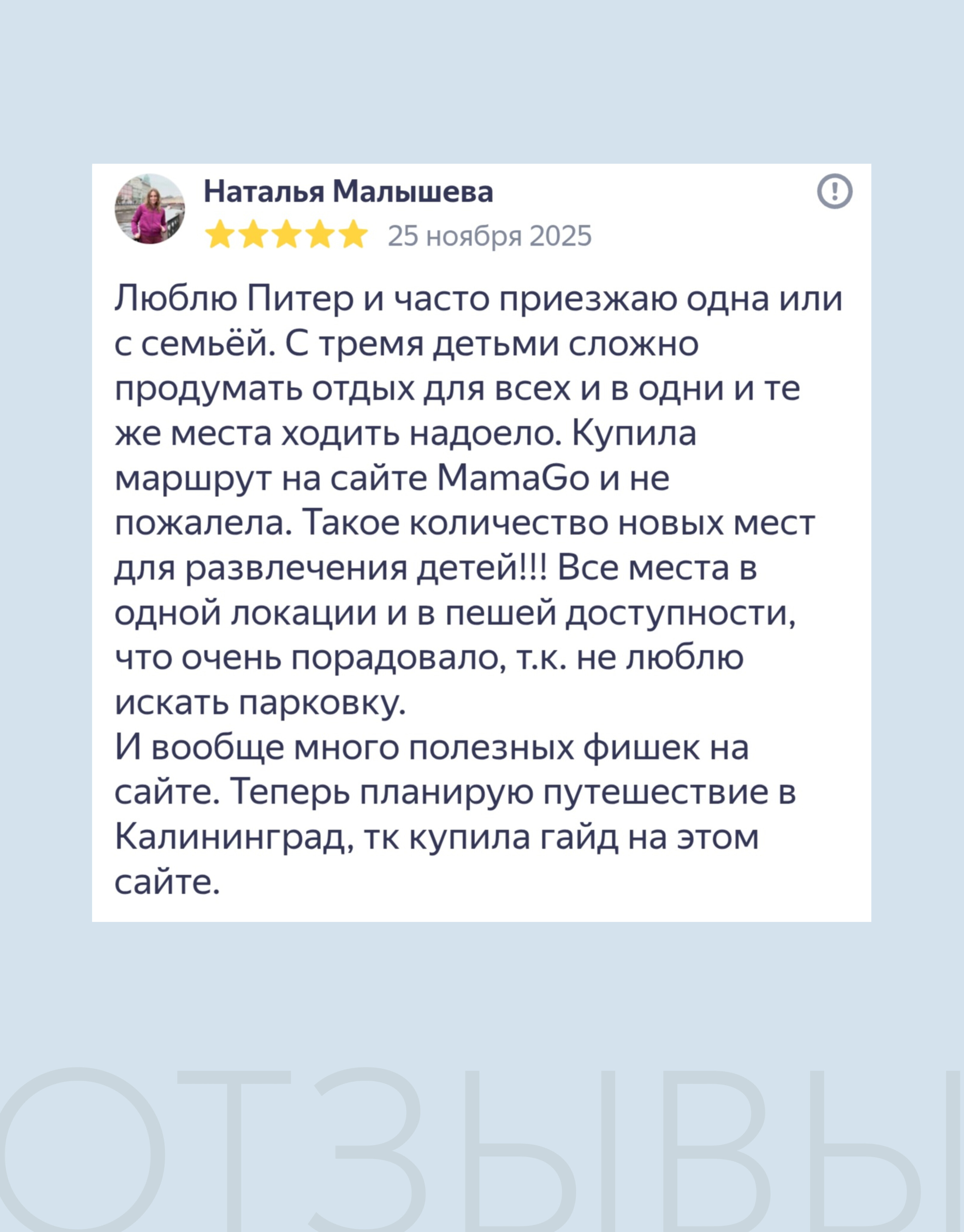 Каждый маршрут-конструктор имеет прикрепленную карту , где отмечены места для полноценного активного дня , а вы можете отметить предложенные активности, отметить их на карте и составить свой собственный маршрут на каждый день. Как правило маршрут-конструктор создан для больших городов ( Москва, Санкт-Петербург и др.) , когда важно спланировать свой день в одном районе , не тратя кучу времени на передвижение с одного конца города на другой. Мы очень ценим время мамочек и терпение юных путешественников .